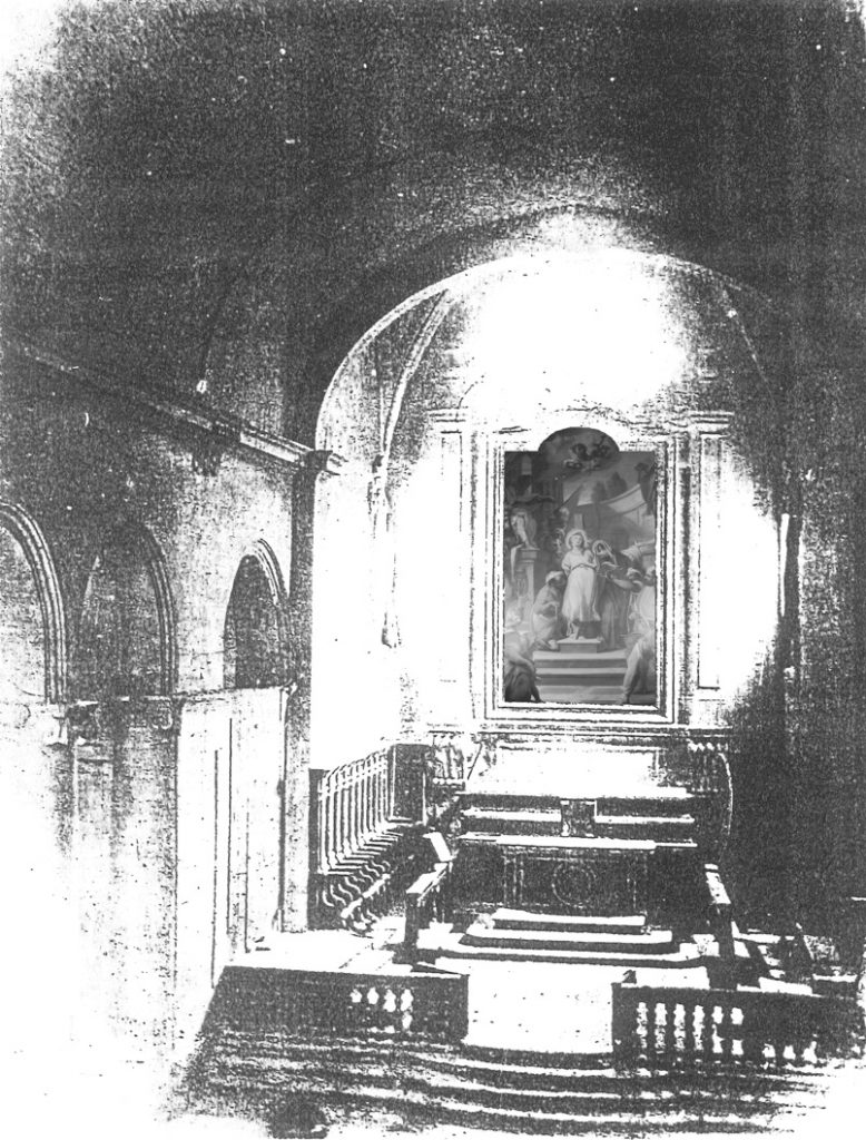 Arduo a credersi, ma questa vecchia fotografia rappresenta l’interno della chiesa di Santa Cristina! La navata centrale, le colonne, l’abside… tutto appare deturpato da interventi di «folle» restauro operati a partire dal 1793 sorto l’impulso di un «modernismo», per noi oggi incomprensibile. Scrive «La Tribuna Illustrata» del 31 dicembre 1911: «La cieca ignoranza di chi avrebbe dovuto mantenere religiosamente conservate le bellezze di questo tempio nei tempi passati, fece sì che esso venisse ignobilmente deturpato».