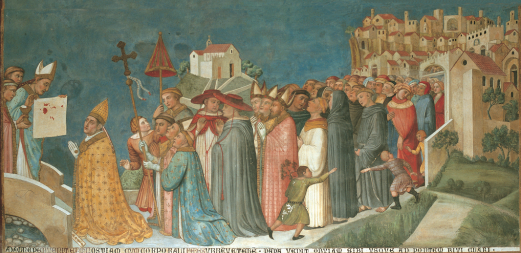 Anche l’espressione artistica nel corso dei secoli ha testimoniato visivamente i fatti del 1263 e l’importanza che ebbe il prodigio nella storia della chiesa e nella vita delle comunità di Orvieto e Bolsena: