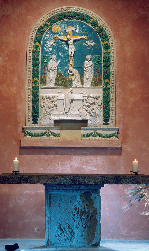 – il plastico maiolicato di Benedetto Buglioni raffigurante la Crocifissione e il Prodigio (1496);