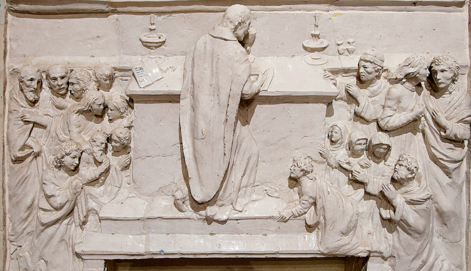 mani del crocifisso; mentre nella parte inferiore, divisa da una leggera modanatura, è la scena del Miracolo.