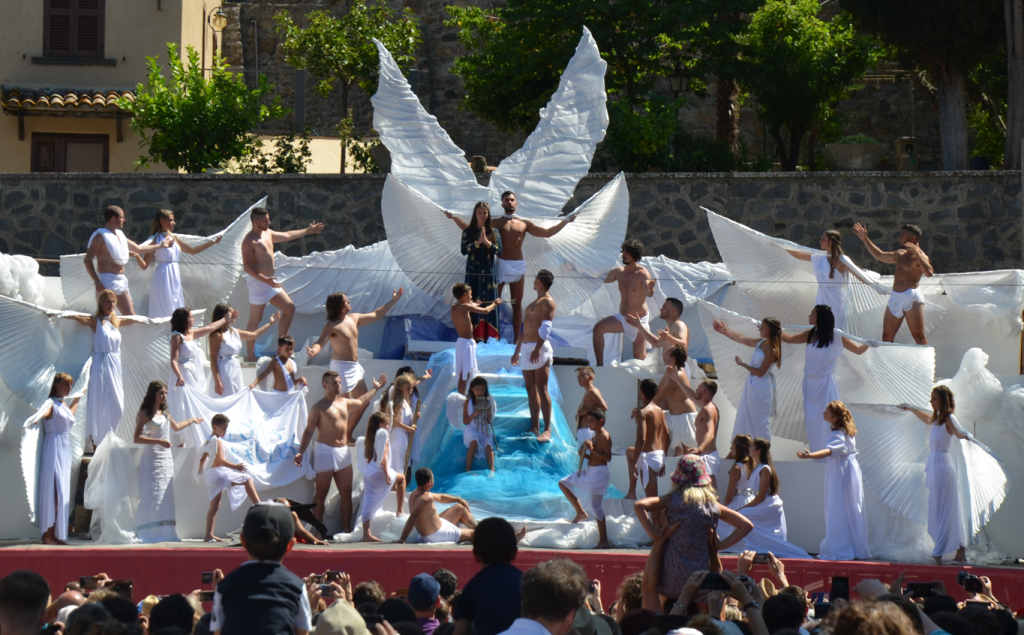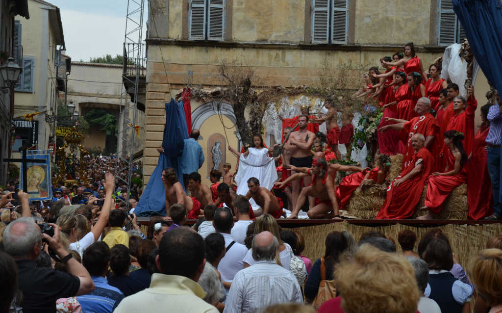 Questa manifestazione, “vera reliquia vivente del dramma sacro”, non ha conosciuto interruzioni nel corso dei secoli, névive avulsa da un profondo sentimento di devozione e da un senso di appartenenza della santa alla sua comunità, in un processo di quasi identificazione con una figura senza tempo. Tale singolare azione scenica perde le sue origini nella notte dei tempi, anche se i primi documenti letterari risalgono al XVI secolo; dalla seconda metà del secolo XIX ha interessato i maggiori studiosi di storia del teatro, della religione, di antropologia.
